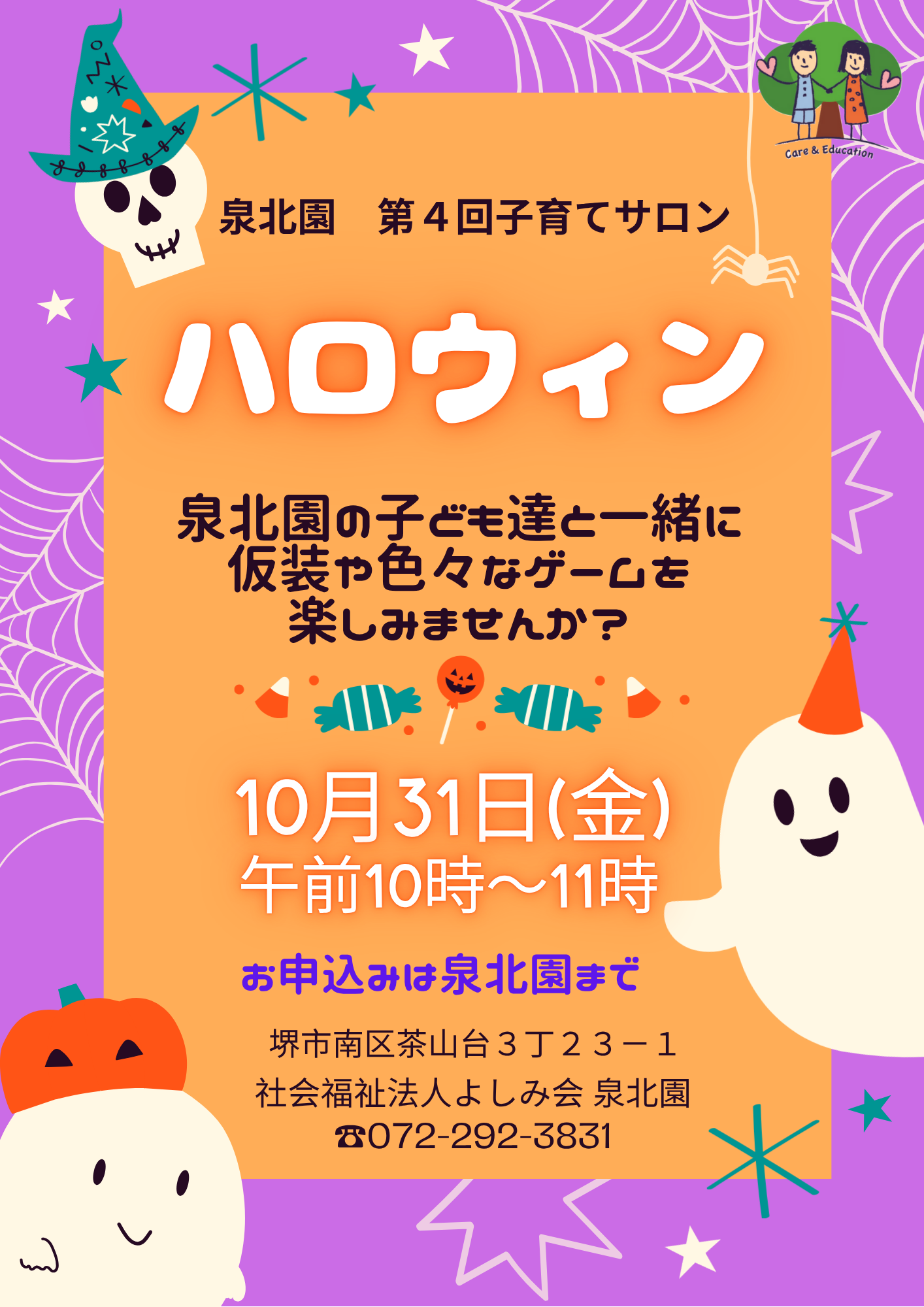 第4回 子育てサロン🎵ハロウィン🎵を実施します。詳細は「こちら…」