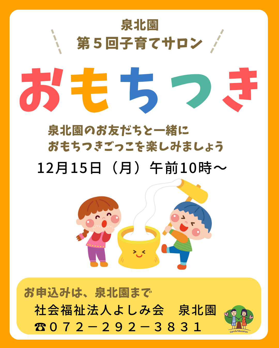 第5回子育てサロン「おもちつき」のご案内です。詳細は「こちら」から・・・